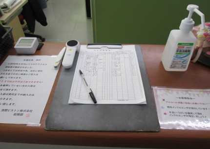 ?検温(全社員・来訪者)37.5℃以上の方は自宅待機後病院へ