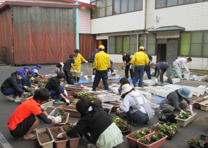 天気にも恵まれ青空のした行う事ができ、また家でも花を育てている方は慣れた手つきでパパパッと植えられていましたね(^o^)丿