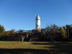 高さ35mの宇宙ロケット型展望台「コスモタワー」の周辺には、